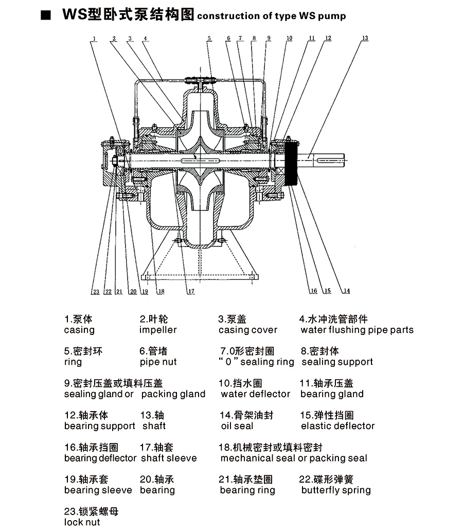1、WS型泵由于两侧支撑较短,工作平稳,噪音小,振动小,可提升速度工作。因此,它们可以被广泛使用。